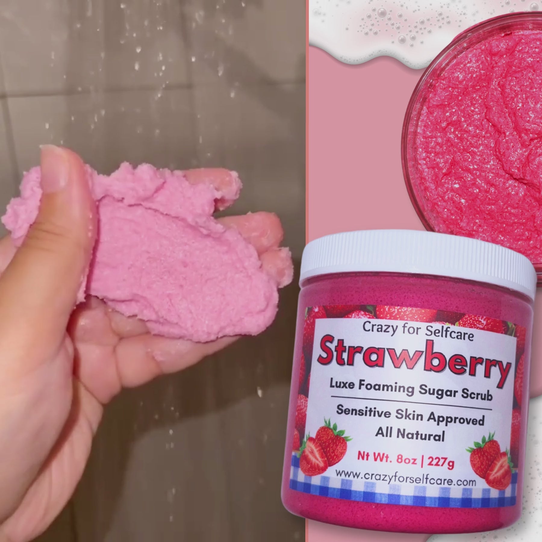 🧼 Step 1: Strawberry Luxe Foaming Sugar Scrub