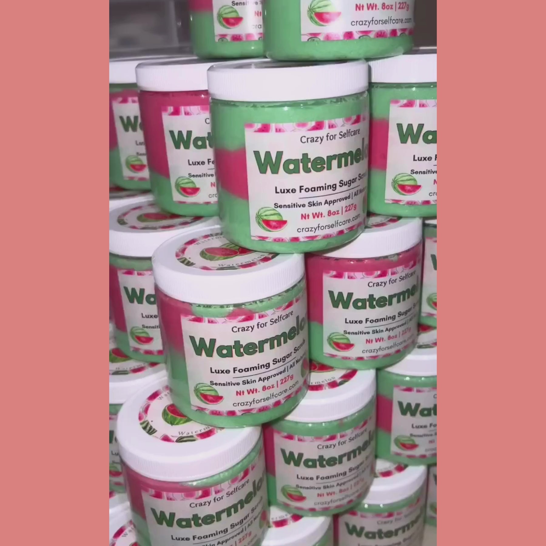 Experience luxurious skincare with Watermelon Luxe Foaming Sugar Scrub. This foaming sugar scrub features a delicate watermelon scent and is rich in Vitamin E, helping to boost collagen production, reduce signs of aging, and brighten the skin. Enjoy softer, smoother skin in no time.